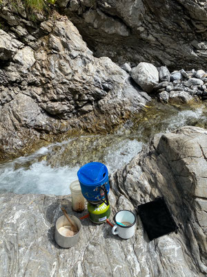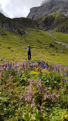 "Mutter Erde trägt mich, Mutter Erde nährt mich." und der Versuch, mich zu verbinden, mich Durchlässig sein zu lassen für all das Unbekannte, all das nicht Sichtbare und all das, was mir gut gesonnen ist, mich behütet und beschützt... dies gab dann wieder neue Kraft, neue Energie und die nächsten Schritte war der Ruckdack nicht mehr schwer, waren die Schritte wieder etwas beschwingter.