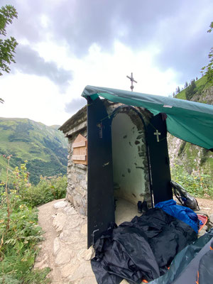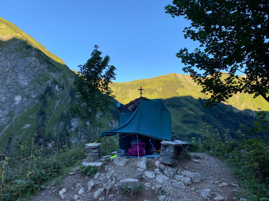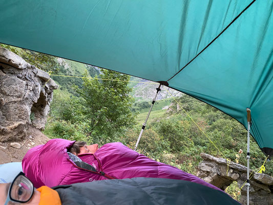 Wir übernachten draußen, im Tarp oder Zelt, in Schutzhütten und kleinen Pensionen.